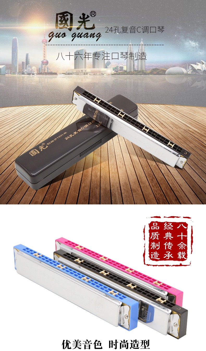 国光24穴复音ハ-モニカク调の初心者児童生徒成人自学演奏口オルガン无料刻印ブラック