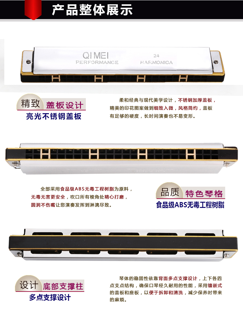 ハーモニカQIMEIここだまハーモニカ子供ハ-moni高级成人プロミニ牌24穴演奏アルク学生用銅座音符マイク24穴紫紫アクアハ-モニ(铜座板)