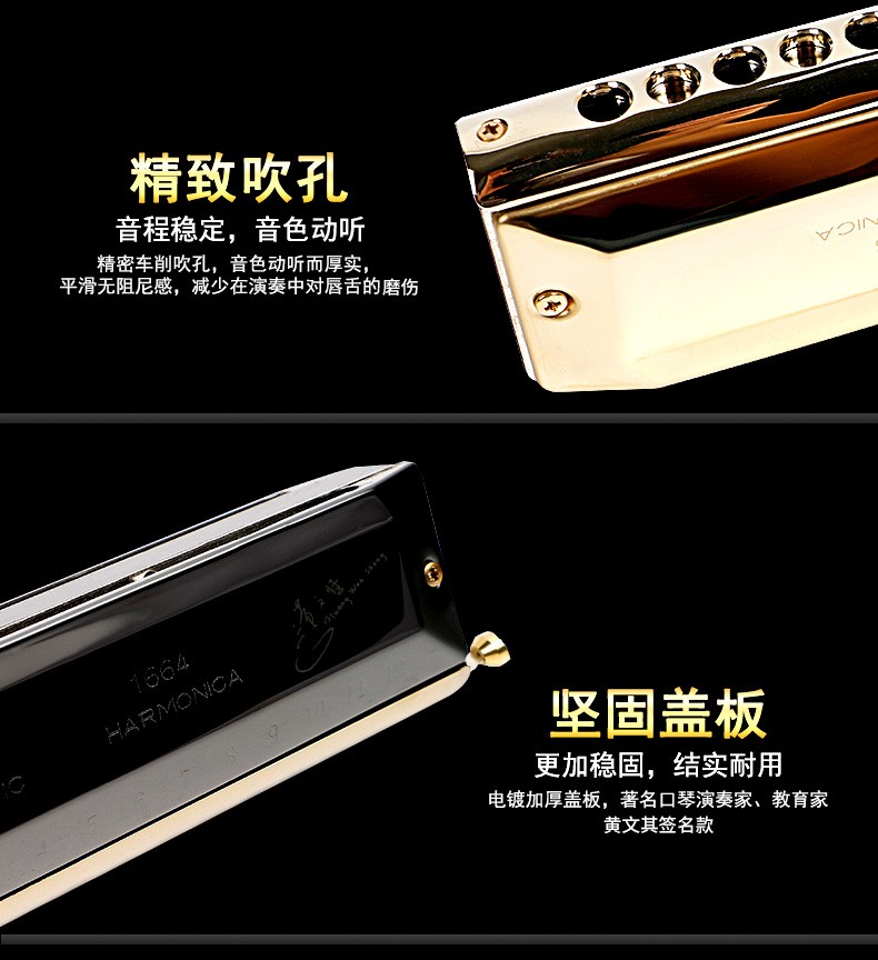 QIMEI C调12穴48音クロマチハ-モニ成人児童初学プロ竞技演奏楽器1664黒ハ-モニカカ