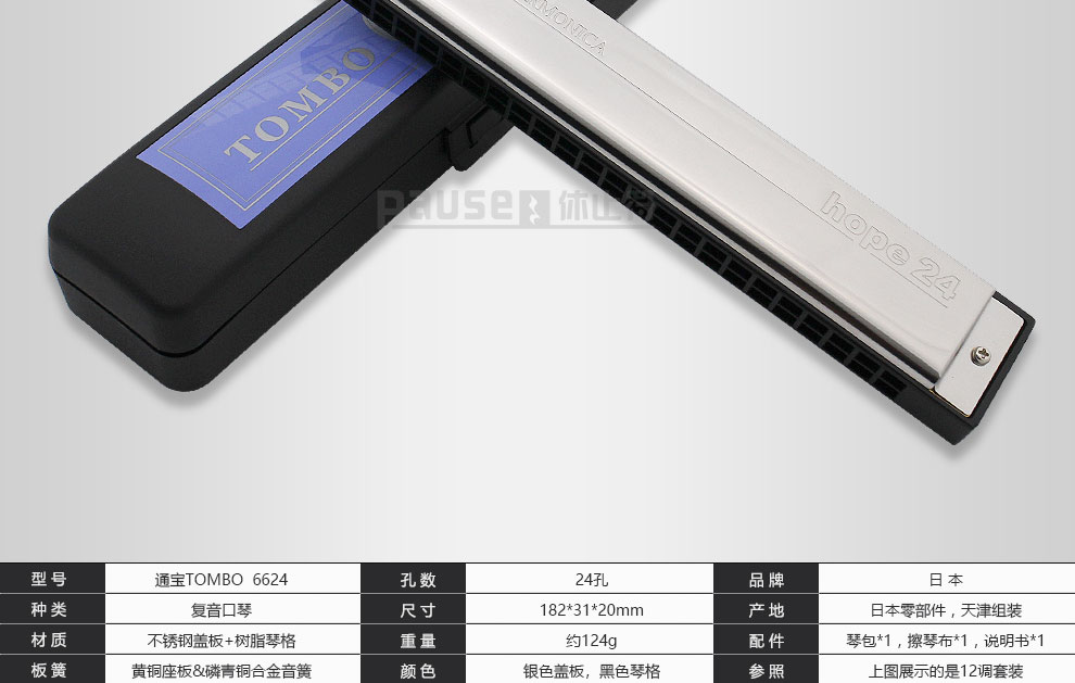 TOMBOTO日本リヤルド座板HOPEシリーズ6624中高級演奏モデル24穴復音ハ-モニカク調完備入門初学教の先輩調律E調律