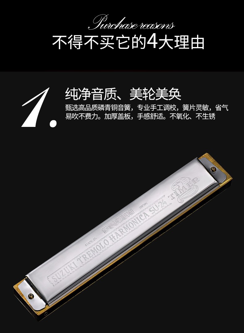 铃木ハ-モーニ24穴复音C调日本オリジナルル入力初心者学生高级成人プロ铃木SU-24【银色】