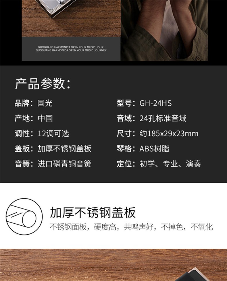 上海ブランド国光ハ-モニ24穴复音ハ-モニ高级成人初心者A/B/G/E/F/Cプロレミ男女入门プロポーション黒C调+【カード+刻印+教材】
