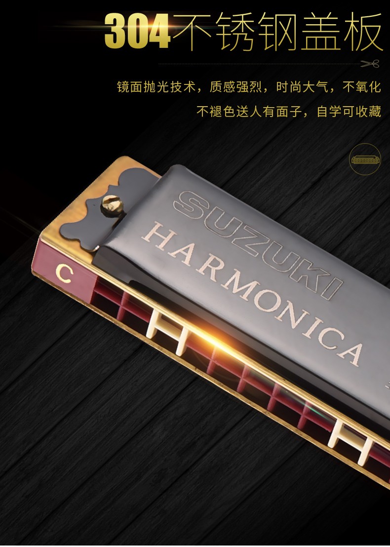 SUZUKI日本铃木オリジナルドC调24穴ハ-モニカゲC/A/F学生ハ-モニ高级成人プリカ高级成人プリロスコ高级24穴黒蘭C调【全套学习礼包】