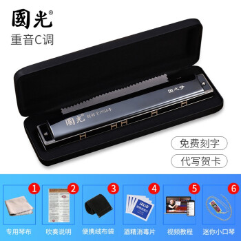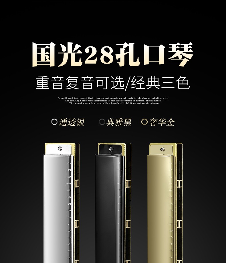 國光ハーモニカプロプロ28穴重音德国进口リード複音C調初心者入门 28穴银色【重音】+【全套赠品】